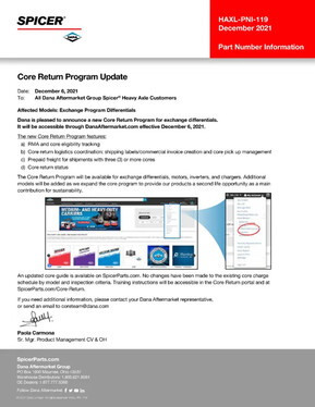 Access our Core Return Center tutorial video now! You can create and track your core returns with Dana’s online Core Return Center.
